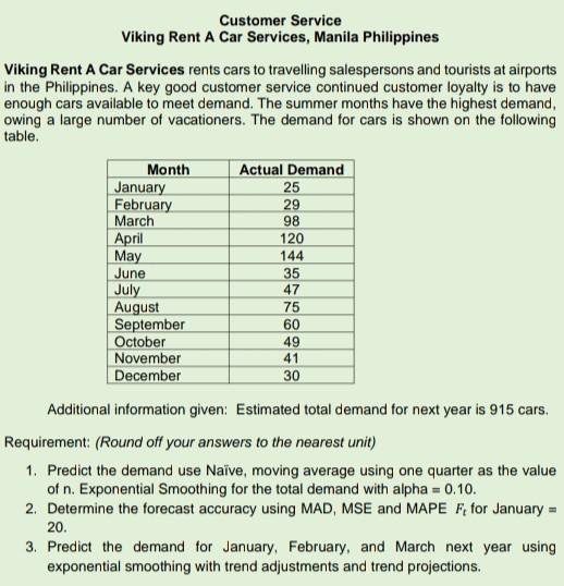 Solved Customer Service Viking Rent A Car Services Manila Chegg Com